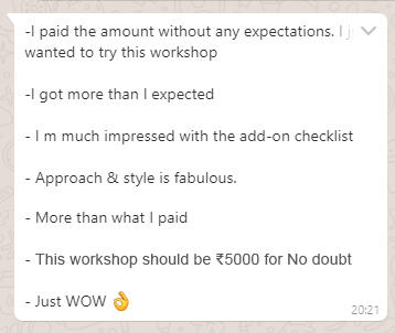 This is a Workshop and not an online video course where you'll be participating actively. It is your responsibility to have gone through all the details in this page before Making Payment. Refunds or Transfer to Future Batch isn't Possible.